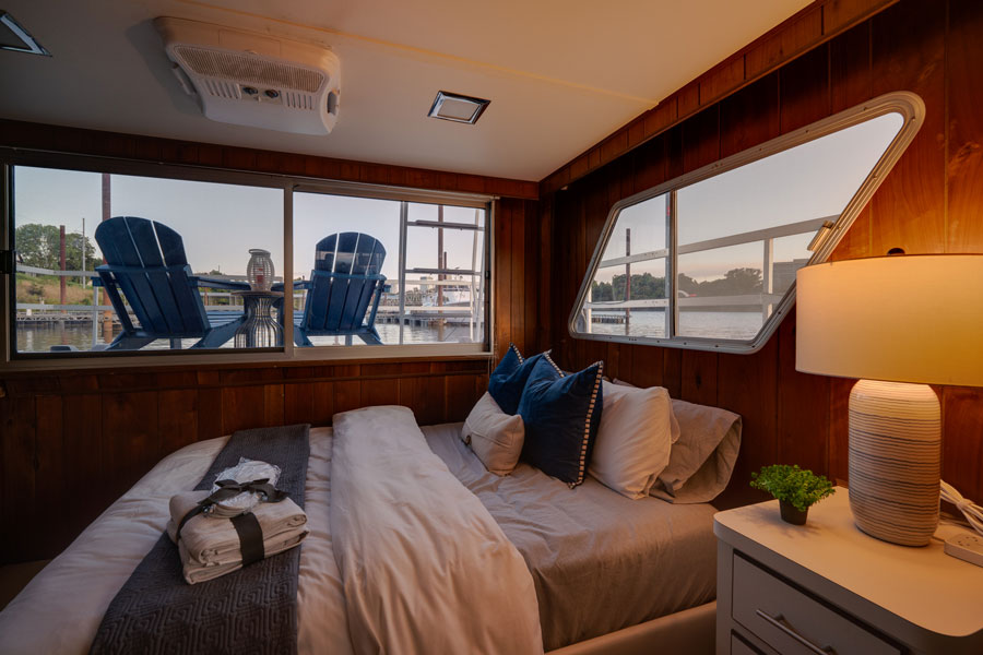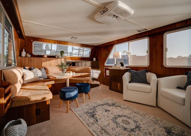 This beautiful houseboat is available for short-term or long-term rental. Email Carol Worley at